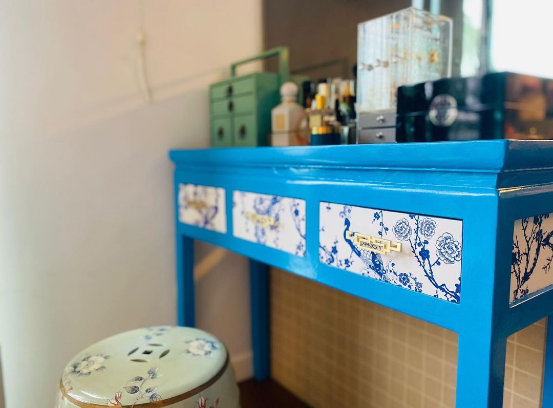 During the many hours spent with a paintbrush during the COVID lockdown in Hong Kong, Sue Whitney discovered the joy of transforming everyday household items into stylish statement pieces that light up a room.